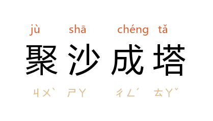 例如:「只要努力,必能聚沙成塔,显现成绩。」