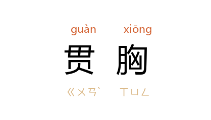 引《逸周书·王会》:“正西 昆仑、狗国、鬼亲、枳己、闟耳、贯胸、雕题、离丘、漆齿。”《山海经·海外南经》:“贯匈国 在其东,其为人匈有窍。”唐 沉佺期 《度安海入龙编》诗:“我来 交趾郡,南与 贯胸 连。”明 韩洽 《题李龙眠诸夷职贡图》诗:“得毋旧本重临摹, 左食、贯胸 聊玩弄。”