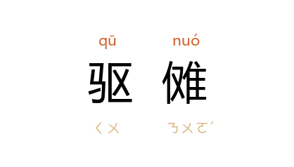 ⒈ 旧时岁暮或立春日迎神赛会,驱逐疫鬼。始载《后汉书·礼仪志中》:“季冬之月,星迴岁终,阴阳以交,劳农大享腊。先腊一日,大儺,谓之逐疫。其仪:选中黄门子弟十岁以上,十二岁以下,百二十人为侲子。皆赤幘皁製,执大鼗。