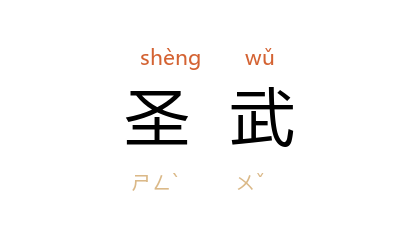 ⒉ 指圣明而有武功的君主。按, 清 魏源 有《圣武记》,即述 清 代开国至 道光 间的历次战役,并及考证及军制。