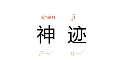 ⒈ 见“神迹”。同“神迹”。亦作“神跡”。亦作“神蹟”。神灵的事迹;灵异的现象。