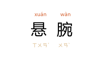 引宋 赵希鹄 《洞天清禄集·古翰墨真迹辩》:“山谷 乃悬腕书,深得《兰亭》风韵,然行不及真,真不及草。”明 方孝孺 《题宋仲珩草书自作诗》:“子山 善悬腕,行草逸迈可喜。”清 昭槤 《啸亭杂录·成王书法》:“其师少时,犹及见 董文敏 握笔,惟以前三指握管悬腕书之。”