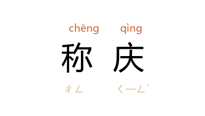 引《北史·卷八六·循吏传·魏德深传》:「贵乡吏人,歌呼满道,互相称庆。」宋·欧阳修〈渔家傲·正月斗杓初转势〉词:「金刀剪彩功夫异,称庆高堂欢幼稚。」