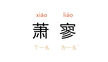 引五代 徐铉 《题雷公井》诗:“揜靄 愚公谷,萧寥羽客家。”元 揭傒斯 《晓坐张先生朝阳轩》诗:“萧寥尘外事,风叶满窗间。”清 魏之琇 《买陂塘·苹花》词:“萧寥坐觉添秋思,还袭舞帬歌扇。”