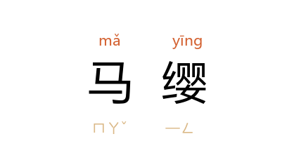 引唐 卢照邻 《刘生》诗:“翠羽装刀鞘,黄金饰马缨。”元 马祖常 《都门一百韵用韩文公<会合联句>诗韵》:“声名惜马缨,音律辨牛鐸。”