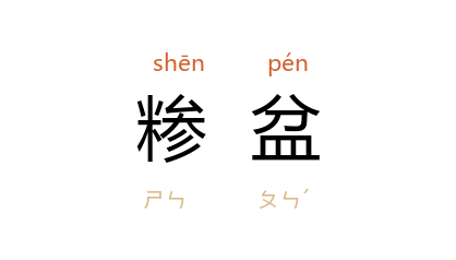 ⒈ 旧俗于除夕祭祀先祖及百神时,架立松柴,举火焚烧以送神,称为「糁盆」。也作「籸盆」。