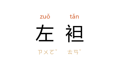 ⒈ 本为古代丧礼中脱下左袖,露出左臂的礼仪。后指帮助、偏护某一方。清·孔尚任。