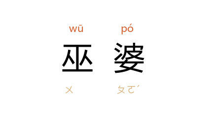 ⒈ 女巫。后指以装神弄鬼替人祈福禳灾、占卜等为职业的女人。