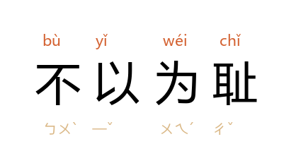 引宋 乐史 《杨太真外传》:“故絶逆耳之言,恣行燕乐,袵席无别,不以为耻,由 林甫 之赞成矣。”宋 周煇 《清波别志》卷上:“习熟闻见,皆不以为耻。”鲁迅 《书信集·致曹靖华》:“上海 之所谓‘文人’……而居然摇笔作文,大发议论,不以为耻。”