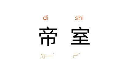 引《汉书·翟方进传》:“天降威明,用寧帝室。”前蜀 杜光庭 《虬髯客传》:“公为帝室重臣,须以收罗豪杰为心,不宜踞见宾客。”清 唐甄 《潜书·鲜君》:“世族贵家,其子孙鲜有贤者。何况帝室富贵,生习骄恣,岂能成贤!”