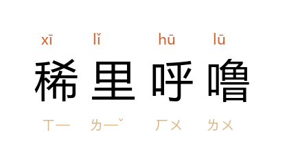 例如:他端起一碗粥,稀里呼噜地喝了起来。如:他稀里呼噜地睡得很香。