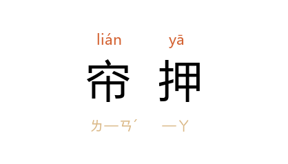 引唐 李商隐 《灯》诗:“影随帘押转,光信簟文流。”唐 罗隐 《仿玉台体》诗:“晚梦通帘柙,春寒逼酒罏。”吴梅 《检点》诗之二:“烛龙弹泪彻堦除,帘押银葱捲未舒。”