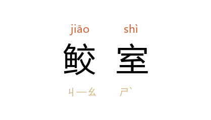 引唐 杜甫 《秋日夔府咏怀奉寄郑监李宾客一百韵》:“俗异隣鮫室,朋来坐马韉。”明 唐顺之 《漂布架》诗之二:“移向海傍堪望处,错疑鮫室挂寒綃。”《红楼梦》第七六回:“只见天上一轮皓月,池中一个月影,上下争辉,如置身于晶宫鮫室之内。”