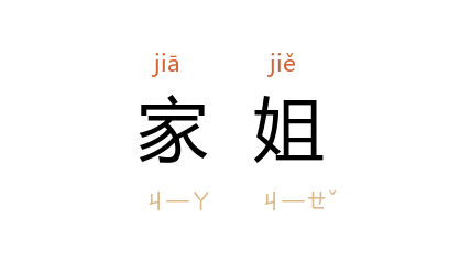 引《红楼梦·第六八回》:「奴家年轻,一从到了这里之事,皆系家母和家姐商议主张。」