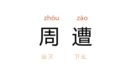 ⒈ 四周、周围。唐·刘禹锡〈石头城〉诗:「山围故国周遭在,潮打空城寂寞回。」也作「周遭」。