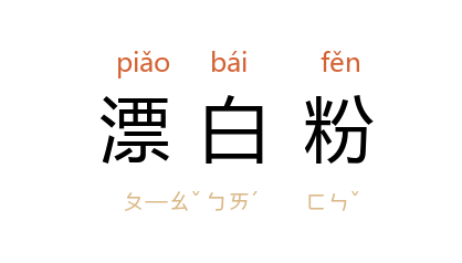 ⒈ 一种能用来漂白和消毒的无机化合物。主要成分为次氯酸钙,呈白色粉末状,有氯气的臭味。