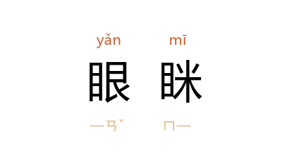 引《东周列国志》第一回:“宣王 在玉輦之上,打个眼瞇,忽见远远一辆小车,当面衝突而来。”眼力差,判断错误。 清 昭槤 《啸亭杂录·马僧》:“两盗,雏耳;虽相伺而眼眯,误赤金为钱鏹,故不直一下手。”
