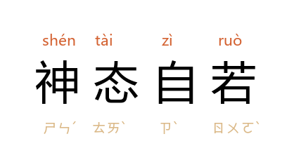 ⒈ 神情态度从容自然。沙汀《我“做广告的”表兄的信》:“接着,在所长正向那两个神态自若的外宾道歉当中,两个委员老爷带着马弁起来了。”
