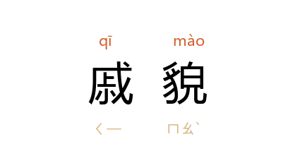 引晋 陆机 《叹逝赋》:“伤怀悽其多念,慼貌瘁而鲜叹。”犹戚容。 晋 陆机 《述思赋》:“骇中心於同气,分戚貌於异方。”晋 陆机 《叹逝赋》:“伤怀悽其多念,戚貌瘁而尠欢。”