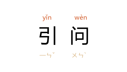 引《后汉书·李固传》:“陛下宜开石室,陈图书,招会羣儒,引问得失。”《资治通鉴·唐高宗显庆四年》:“上以为然,竟不引问 无忌。”《元典章·刑部三·欲奸亲女未成》:“於 至元 五年八月十三日节次,将女 季春 引问,意欲姦耍。”
