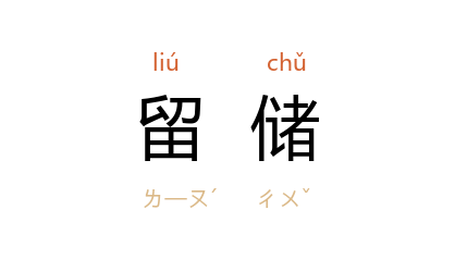 引晋 张协 《咏史》:“挥金乐当年,岁暮不留储。”《南史·刘悛传》:“﹝ 悛 ﹞罢 广司 二州,倾资贡献,家无留储。”《新唐书·李元紘传》:“﹝ 李公 ﹞为国相,家无留储,虽 季文子 之德,何以加之!”