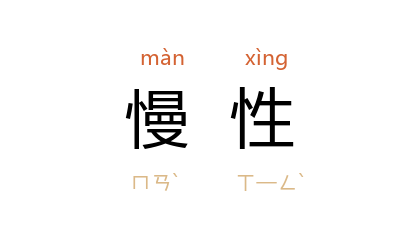 英语slow and patient, chronic (disease), slow to take effect (e.g. a slow poison)