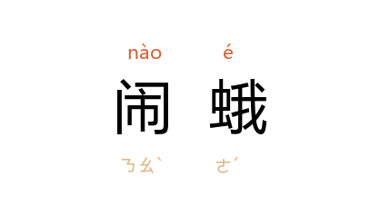清 王夫之 《杂物赞·活的儿》:“以乌金纸剪为蛺蝶,朱粉点染,以小铜丝缠缀针上,旁施柏叶。迎春,元日,冶游者插之巾帽, 宋 柳永 词所谓‘闹蛾儿’也,或亦谓之‘闹嚷嚷’。”