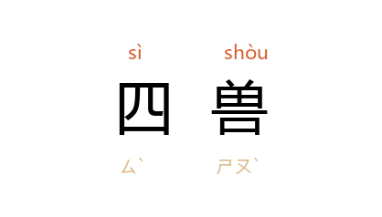 ⒈ 古人以龙、虎、凤、龟四兽为动物之首,阴阳家则附会成天上苍龙、白虎、朱鸟、玄武四星宿。