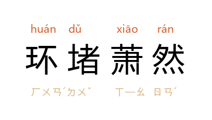 ⒈ 环堵:四面土墙。萧然;萧条的样子。形容家中空无所有,极其贫困。