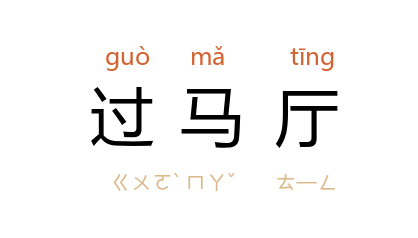 引宋 胡仔 《苕溪渔隐丛话后集·韩致尧》:“《迂叟诗话》云:北都使宅,旧有过马厅。按 唐 韩偓 诗云:外使进鹰初得按,中官过马不教嘶。注云:上乘马,必中官驭以进,谓之过马,既乘之,然后蹀躞嘶鸣。盖 唐 时方镇亦效之,因而名厅也。”