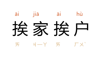 例如:「警方挨家挨户的探访,终于打听到他的下落。」