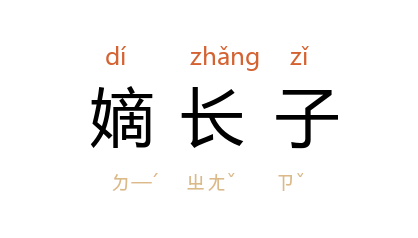 例如:「古时王位的继承,多由嫡长子担任。」