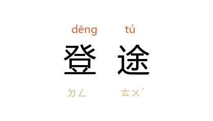 引唐 梁肃 《述初赋》:“何皇鉴之偏属,降湛恩於鯫生。若侧足以登涂,方飭躬以效诚。”宋 朱熹 《答汪尚书书》:“伏蒙劝行,尤荷眷念……但老人年来多病,既不敢劳动登途,又不敢远去膝下,只此一事,便自难处。”《敦煌变文集·降魔变文》:“舍利弗 与众而辞别,是日登途便即发。”