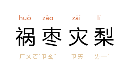 ⒈ 古人刻书多用枣木、梨木做材料,因此称滥刻没有价值的书籍,徒使梨、枣受到灾祸为「祸枣灾梨」。清·纪昀也作「灾梨祸枣」。