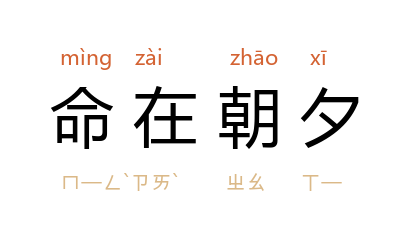 引《汉书·两龚传》:“胜 对曰:‘素愚,加以年老被病,命在朝夕,随使君上道,必死道路。’”《四游记·铁拐大怒洞宾》:“今排七十二座天门阵於 九龙谷,宋 兵不能得破, 六郎 命在旦夕。”
