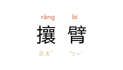 《二刻拍案惊奇·卷六》:「妻子也奋然攘臂道:『我晓得到底容不得我。只是要我去,我也要去得明白。我与你当官休去!』」