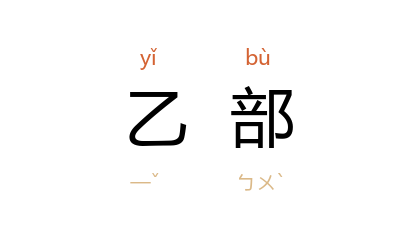 ⒈ 古代群书四部分类法的第二部。 隋 以前称子部书为乙部, 唐 以后称史部书为乙部。