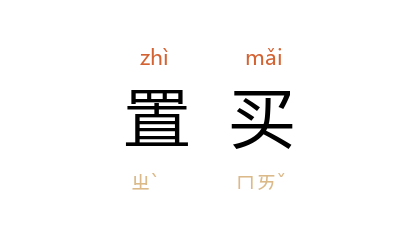 引《二刻拍案惊奇》卷十九:“﹝ 万延之 ﹞自此营建第宅,置买田园,扳结婚姻。”《老残游记续集遗稿》第四回:“儜才説的一百银子,不知算功德钱呢?还是给他置买衣服同那动用器皿呢?”王汶石 《大木匠》:“票子花够一河滩,啥也没置买个啥,就收了那些破铜烂铁。”