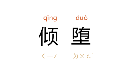 引唐 韩愈 《和虞部卢四汀酬翰林钱七徽赤藤杖歌》:“绳桥拄过免倾堕,性命造次蒙扶持。”元 陈樵 《石溪歌》:“小龙挟向云间过,水滑瓢欹误倾堕。”清 沉复 《浮生六记·浪游记快》:“至则一山中分,两壁凹凸,高数十仞。近而仰视,势将倾堕。”