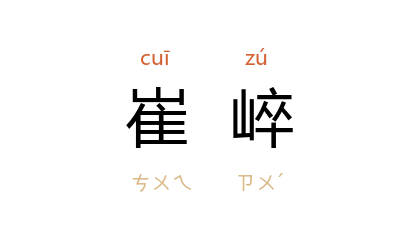 引汉 张衡 《西京赋》:“於前则 终南、太一,隆崛崔崪,隐轔鬱律,连冈乎 嶓冢。”一本作“崔崒”。 南朝 宋 谢灵运 《泰山吟》:“岱宗 秀维岳,崔崒刺云天。”唐 韩愈 《送惠师》诗:“凌 江 诣 庐岳,浩荡极游巡。崔崒没云表,陂陀浸湖沦。”元 揭傒斯 《故叔父常轩五府君哀辞》:“呜呼!山巃嵸而崔崒兮,翳九原以榛榛。”