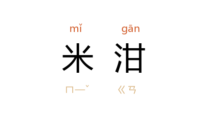 亦称“米泔水”。 《二十年目睹之怪现状》第七四回:“我饿极了,自己到灶上看时,却已是收拾的乾乾浄浄,求一口米泔水都没了。”