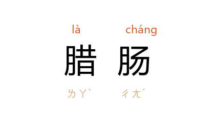 ⒈ 副食品名。熟肉食的一种。猪的瘦肉泥加肥肉丁和淀粉、作料,灌入肠衣,再经煮烤制成。