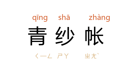 《古今小说·蒋兴哥重会珍珠衫》:“﹝ 三巧儿 ﹞説罢检出一顶青纱帐来,教婆子自家掛了。”