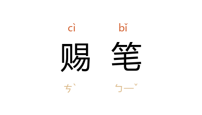 ⒈  后因以“赐笔”指受到君王宠爱恩赐。
