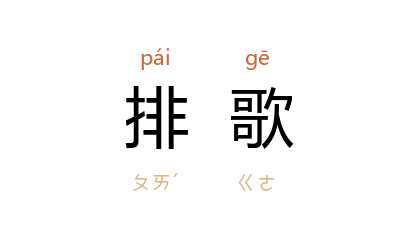 引陈靖 黎白 《深山苗歌》:“‘排歌,好难对哟!’ 何强 笑着回答。”原注:“﹝排歌﹞第一句词儿要一样,别的三句可以跟当时情景变化,先唱的人的第一句老不变,跟唱的人就一直跟下去,跟不上算输。”