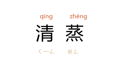 例如:「清蒸鲤鱼」、「清蒸鸡」。