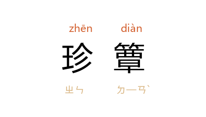 引南朝 宋孝武帝 《伤宣贵妃拟汉武李夫人赋》:“宝罗暍兮春幌垂,珍簟空兮夏幬扃。”宋 程垓 《小桃红》词:“已安排、珍簟小胡牀,待日长閒坐。”明 许然明 《步步娇·题情》套曲:“帘捲西风重门掩,落叶閒珍簟。”