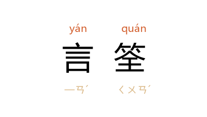 ⒈  言语的迹象。唐·许康佐〈宣尼宅闻金石丝竹之声赋〉:「事宁同于想像,理实閟于言筌。」宋·严羽也作「言诠」。