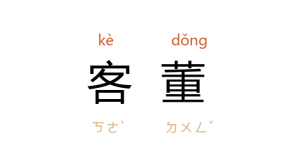 ⒈ 客民中头目的自称。者也。客董者,不事生业,专在城厢内外各乡市镇探听风声,寄宿於栈房,而日以茶寮酒肆为驻足之地。’”参见“客民”。