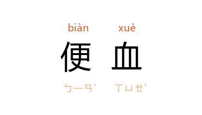 ⒈ 粪便中带血或无粪便而只排出血液。如泌尿系统出血,下消化道出血或痔疮出血等常表现为此种症状。